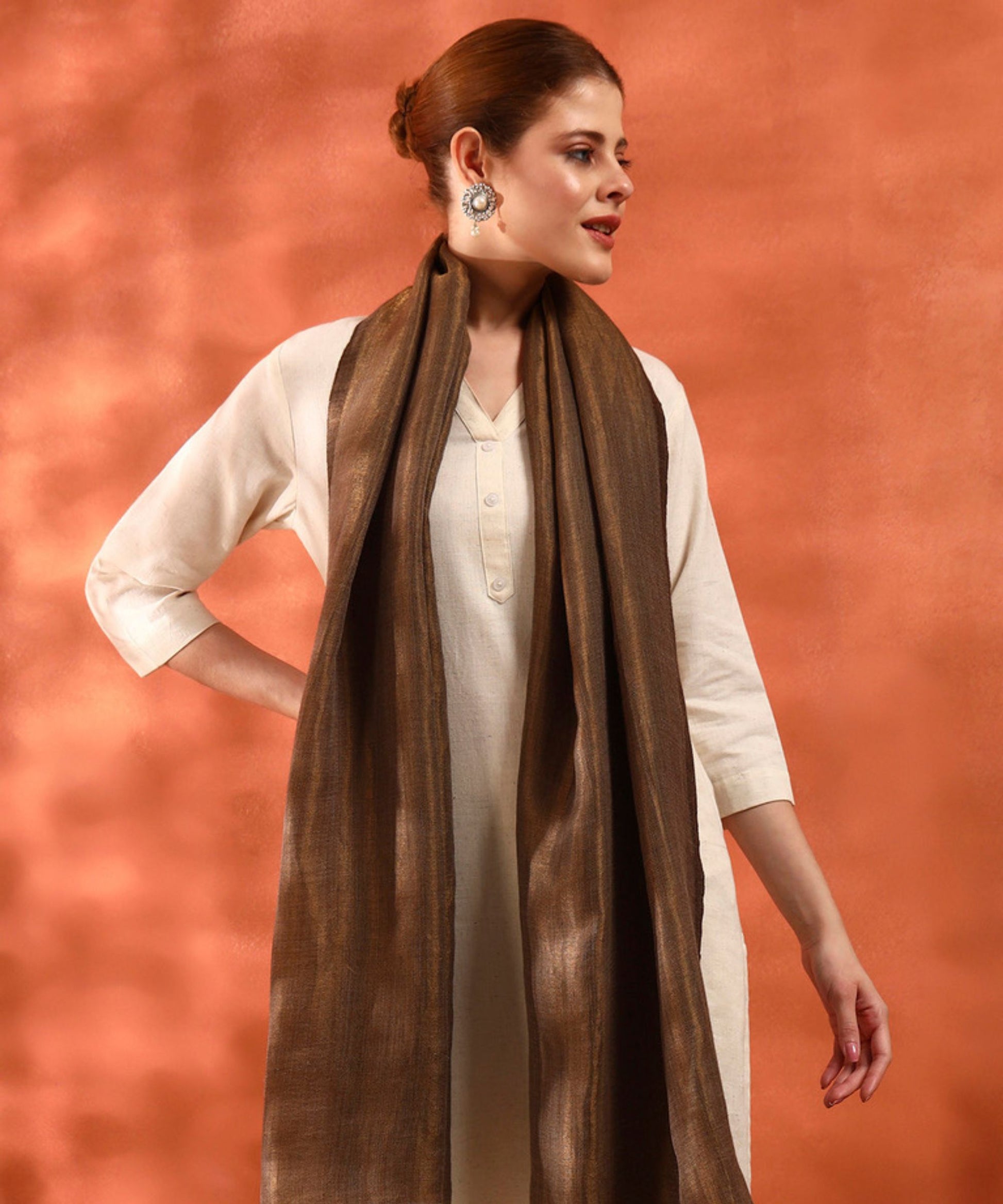 Experience elegance from every angle with this Fine Wool Reversible Moonlight stole. Beautifully woven with subtle zari detailing, it offers two stylish looks in one. Soft, warm, and luxurious, it’s perfect for festive wear, winter outings, or sophisticated everyday styling.