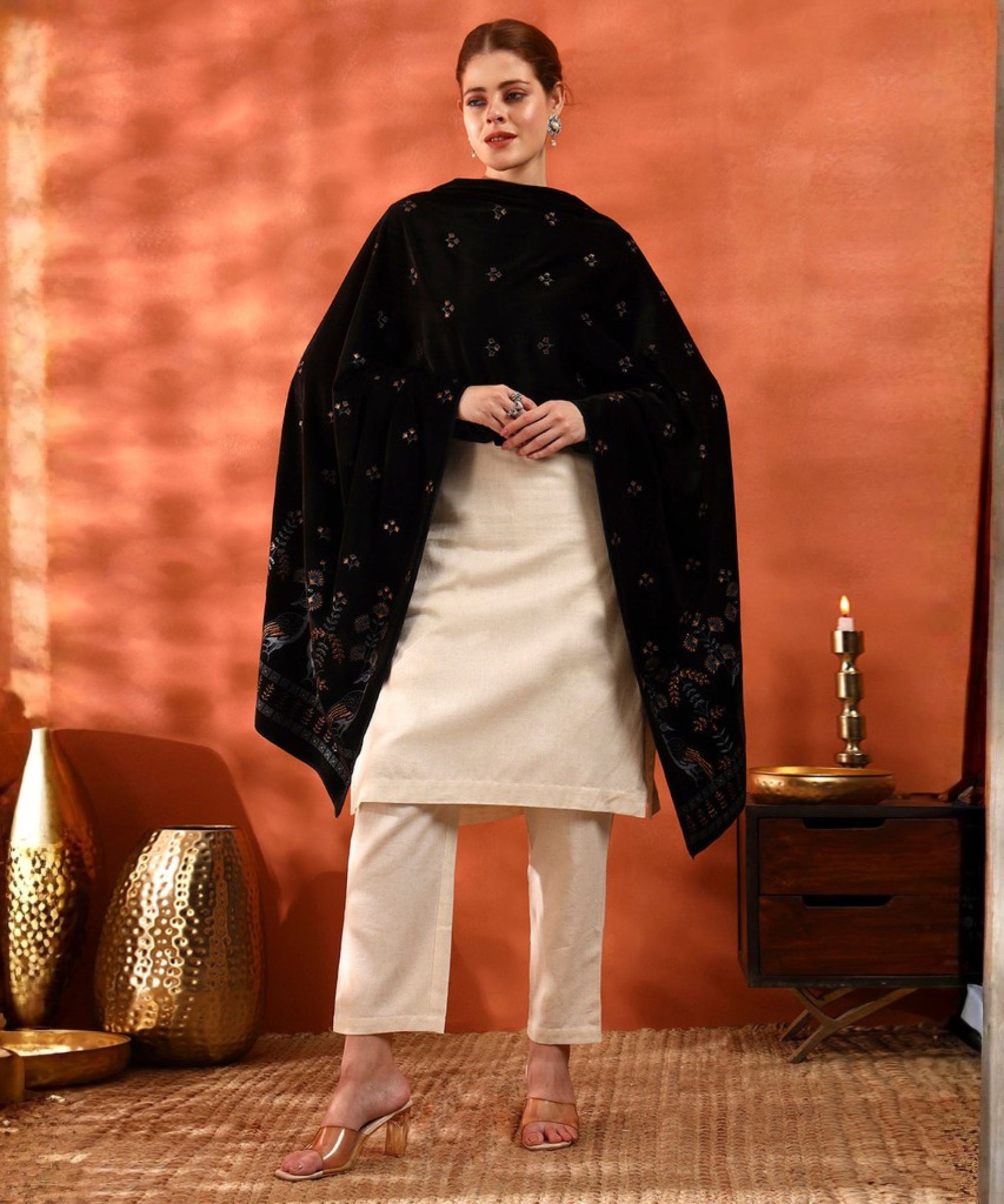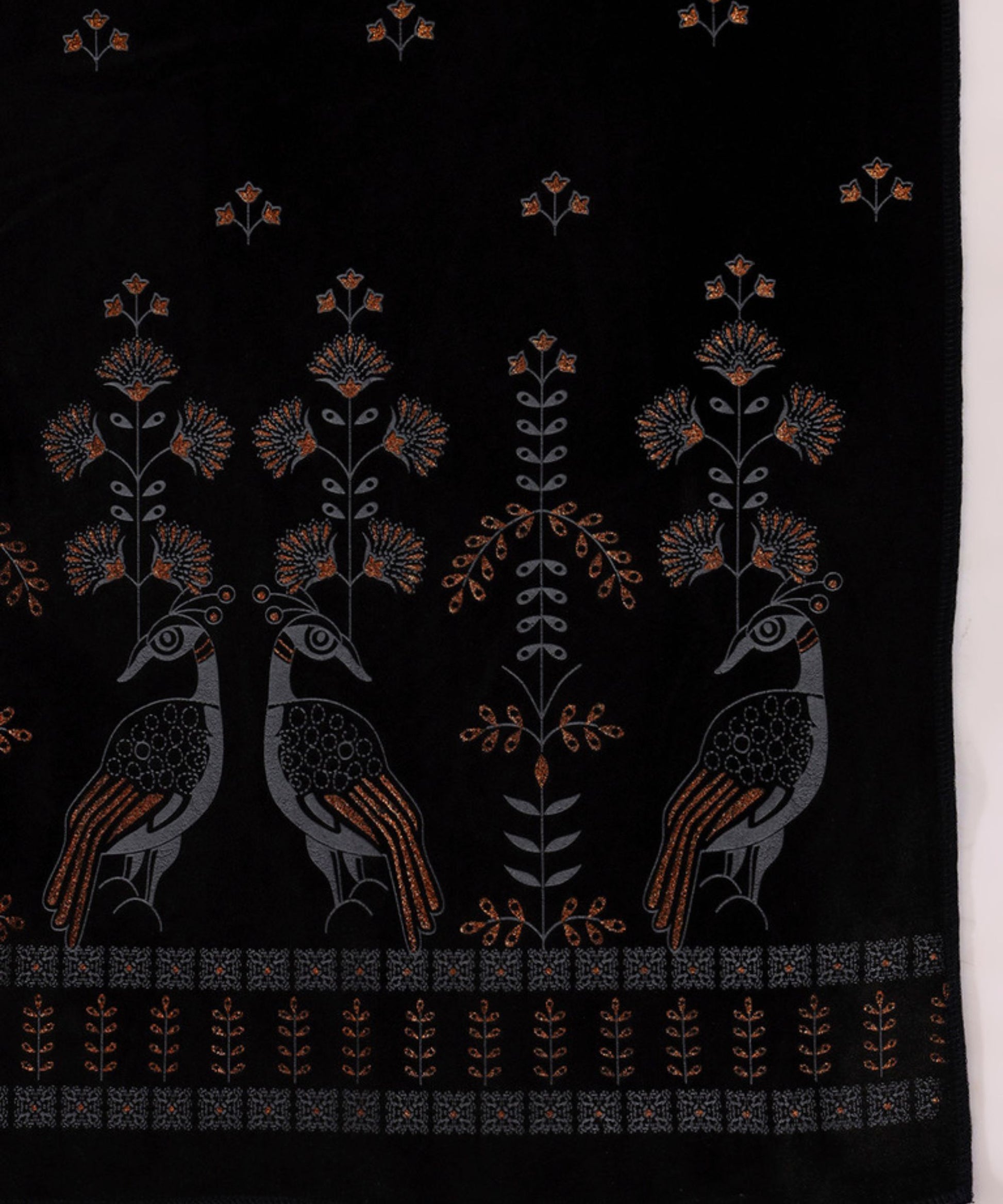 Make a grand style statement with this luxurious velvet stole featuring an elegant peacock design. Soft, rich, and perfect for party wear, it adds instant glamour to festive outfits, evening events, and special occasions.